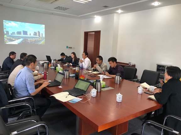 蒋建武董事长代表公司热烈欢迎我院领导及教师的到访,就公司情况及目前负责的上海轨道交通11号线花桥段项目进行了详细介绍,同时探讨了双方在轨道交通管养,运营管理,机电系统、信号系统等方面潜在的科研合作,及公司骨干专业培训方面的合作等。
